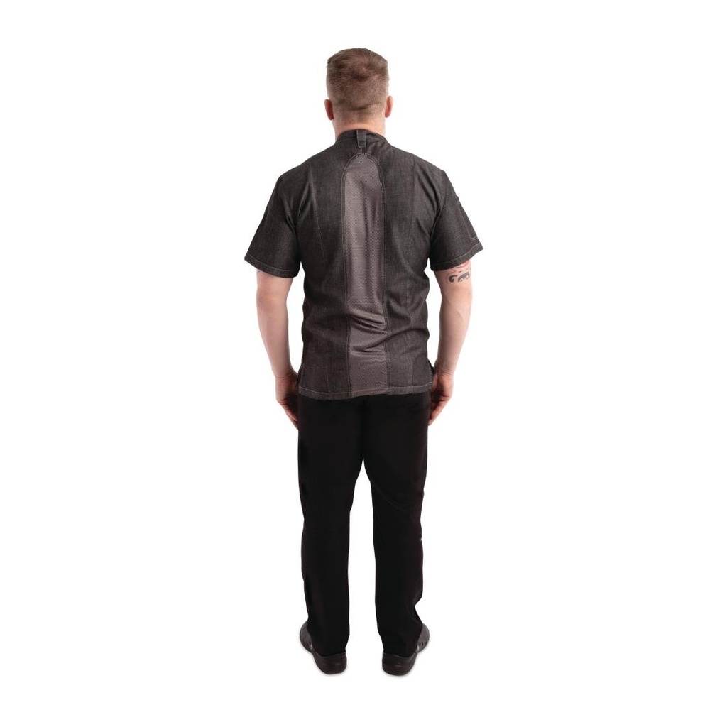 Veste mixte à boutons pression manches courtes Chef Works Tribeca denim noir M