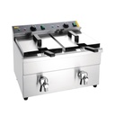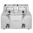 Friteuse de comptoir professionnelle avec couvercles inox. Deux cuves séparées avec commandes indépendantes pour éviter toute contamination croisée et économiser de l'énergie dans les moments plus...