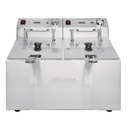 Friteuse de comptoir puissante avec couvercles inox. Possède deux cuves séparées avec commandes indépendantes pour éviter toute contamination croisée et économiser de l'énergie pendant les périodes...