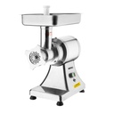 Hachoir avec trémie en inox, moteur de précision doté d'un ventilateur de refroidissement. Fonction d'inversion pour les viandes particulièrement grosses.