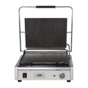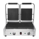 Appareil en acier inoxydable compact d'excellent rapport qualité/prix avec plaques en fonte antiadhésives rainurées ou lisses, au choix, pour des grillades plus saines en quelques minutes. La...