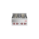 Dessus feux vifs gaz avec thermo-couples, bord anti-ruissellement et allumage piezo. Gaz naturel de série, injecteurs butane/propane fournis.