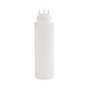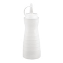 Bouteille avec bouchon attaché qui préserve la sauce et assure un écoulement constant. Capacité 340ml.