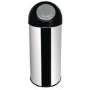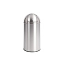 Poubelle en acier inoxydable 18/10 de haute qualité avec couvercle bombé en plastique résistant et bac intérieur.