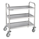 Chariots résistants en acier inoxydable pour les hôtels, restaurants et collectivités où la santé et l'hygiène sont primordiales. Faciles à manœuvrer grâce aux poignées aux deux extrémités....