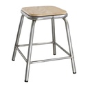 Sièges modernes. Assise en bois et cadre inox pour un design industriel.