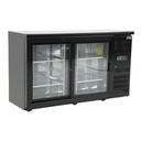 Arrière bar une porte coulissante avec contrôleur de température intégré et dégivrage semi-automatique avec intervalle de temps. Pieds réglables et deux étagères réglables.