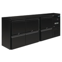 Arrière-bar grande capacité avec un puissant système de refroidissement à air pulsé. 355 litres avec 3 portes vitrées à charnières pour un accès rapide.