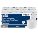 Tork OptiServe® Papier toilette sans mandrin T7 – 2 plis Le papier toilette Tork OptiServe® sans mandrin offre une grande capacité tout en réduisant les déchets et l’encombrement. Chaque rouleau...
